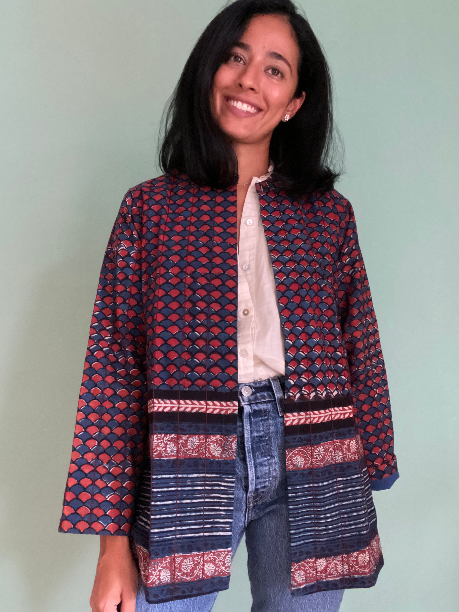 Hand block-printed and hand quilted jackets & kimonos. Featured in British Vogue...
